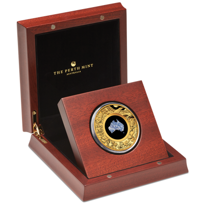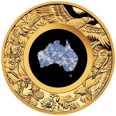 Das Design der Great Southern Land – Blauer Lepidolith Goldmünze vereint Kunst, Symbolik und Natur auf einzigartige Weise.