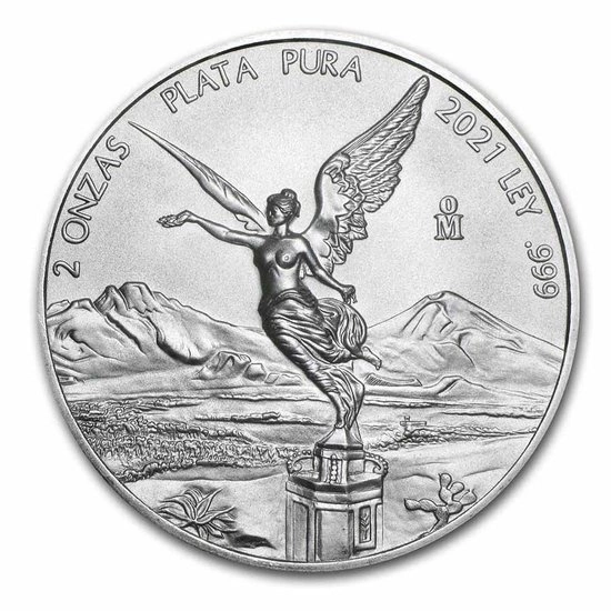 Die Silbermünze Libertad wird seit 1982 von der Banco de Mexico ausgegeben und gilt als die älteste Silberanlagemünze der Welt. Die auch Onza genannte Münze hat keinen festen Nennwert, gilt aber in Mexiko als gesetzliches Zahlungsmittel. Die 2021 Libertad Anlagemünze wurde aus zwei Unzen 99,9 % Feinsilber in Stempelglanz geprägt. Die Vorderseite zeigt wie jedes Jahr die Siegesgöttin Victoria als Symbol der Unabhängigkeit Mexikos. Die Rückseite zeigt das mexikanische Staatswappen umgeben von zehn historischen Wappenformen. Die Anlagemünze aus hochwertigem Silber wird lose geliefert.